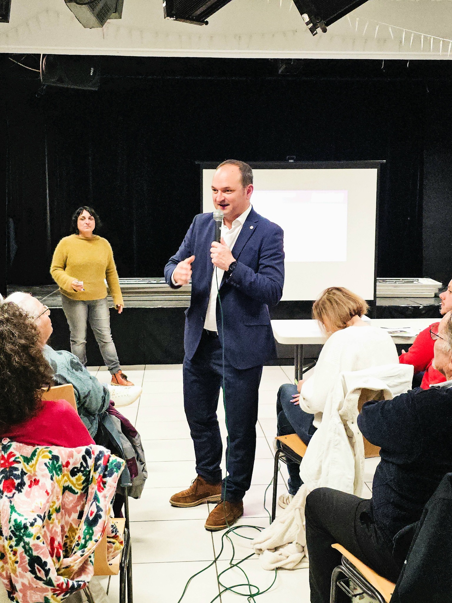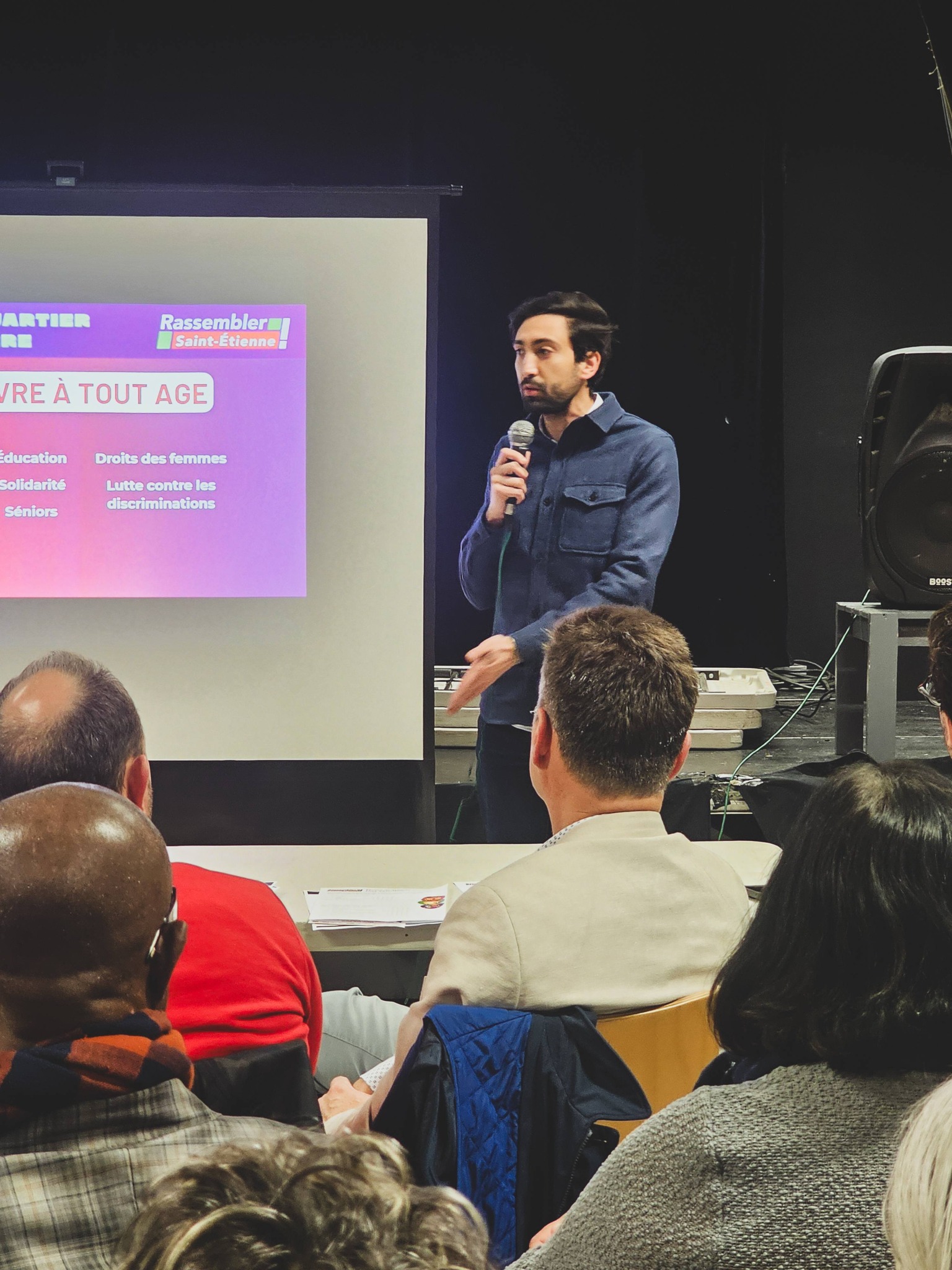 Quel plaisir de vous retrouver, ici, à l'Amicale laïque que je connais très bien, pour notre troisième réunion de proximité. Ce quartier porte une histoire ouvrière et populaire forte : celle des mineurs, des luttes sociales, de la conquête des droits. Rassembler Saint-Étienne, c'est aussi reconnaître cette histoire et construire l'avenir avec celles et ceux qui y vivent.